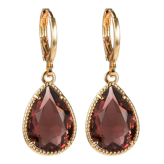 Glass Water Drop Copper Colorful Rare Earth Earrings