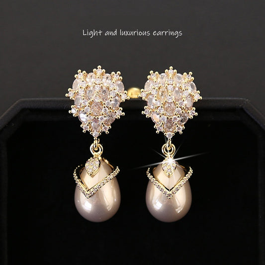 Women's Fashion Simple Brass Gold-plated Emerald Zircon Earrings
