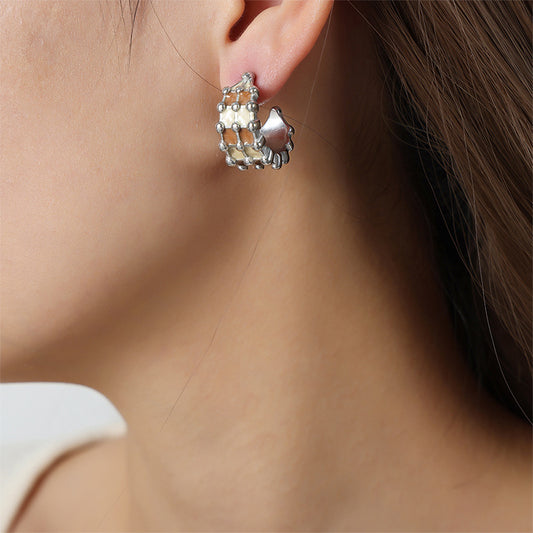 Fashion Personality All-match Simple Color Glaze Multi-layer Titanium Steel Gold Plated C- Shaped Earrings