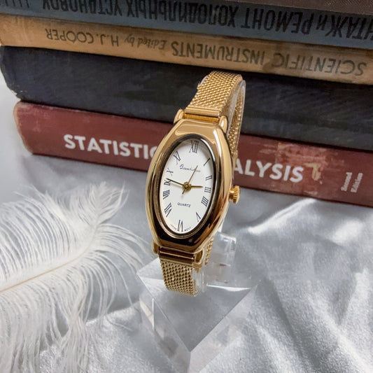 Oval Mesh Belt Retro Golden Simple Graceful Backflow Gold-plated Quartz Watch