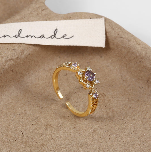 Real Gold Micro Inlaid Zircon Light Luxury Open Ring