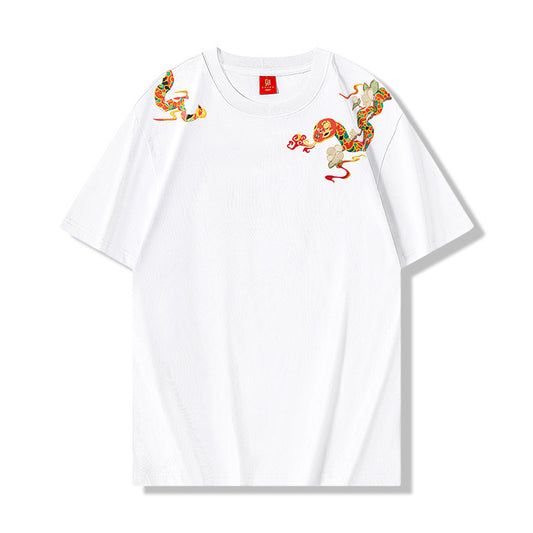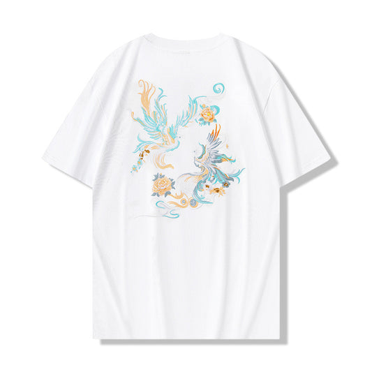 Phoenix Embroidered T-shirt Men's Cotton Half Sleeve