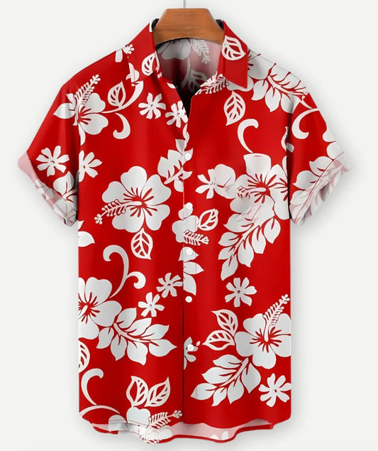Summer Flower Pattern Seaside Men's Clothing Print Shirt