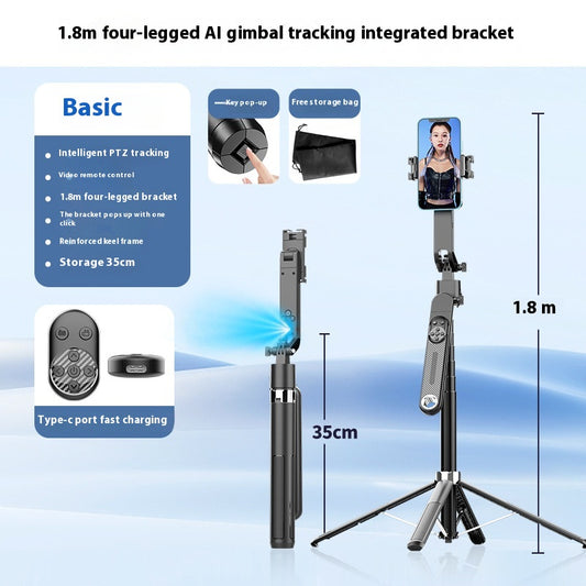 Phone Stand For Live Streaming Anti-shake Retractable Camera Smart Head Stabilizer Hand-held Selfie Stick