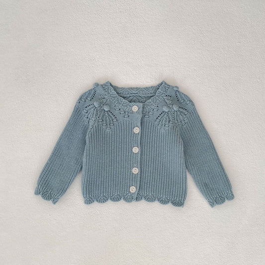 Children's Round Collar Sweater Cardigan Hand Crochet Hollow Flower Pocket Coat