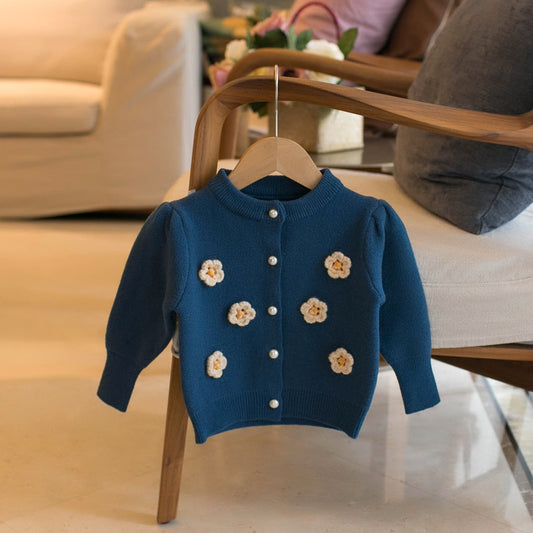 Children's Sweater Girls V-neck Floral Cardigan Sweater