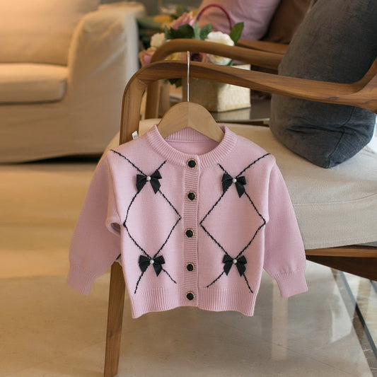Delicate Bow Crew Neck Pullover Cardigan Sweater