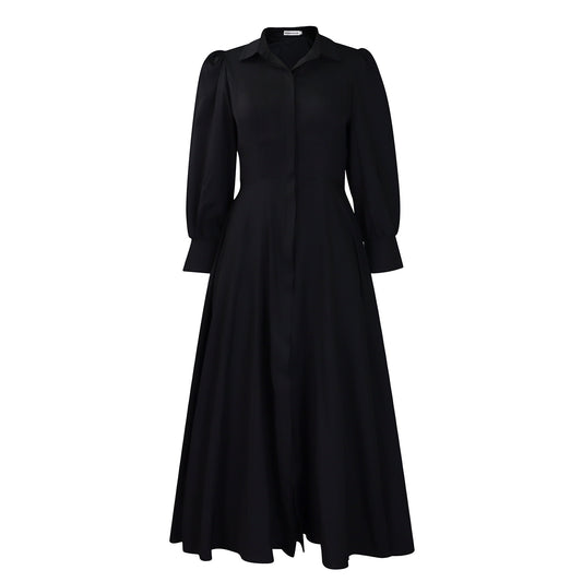 Women's Elegant Long Sleeve Big Hem Shirt Solid Color Dress
