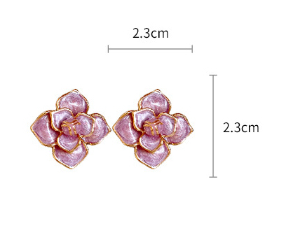 Gold Plated Silver Needle Purple Oil-spot Glaze Flowers Stud Earrings